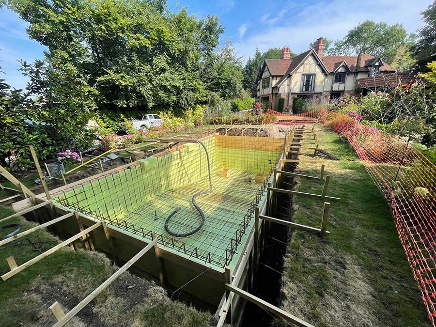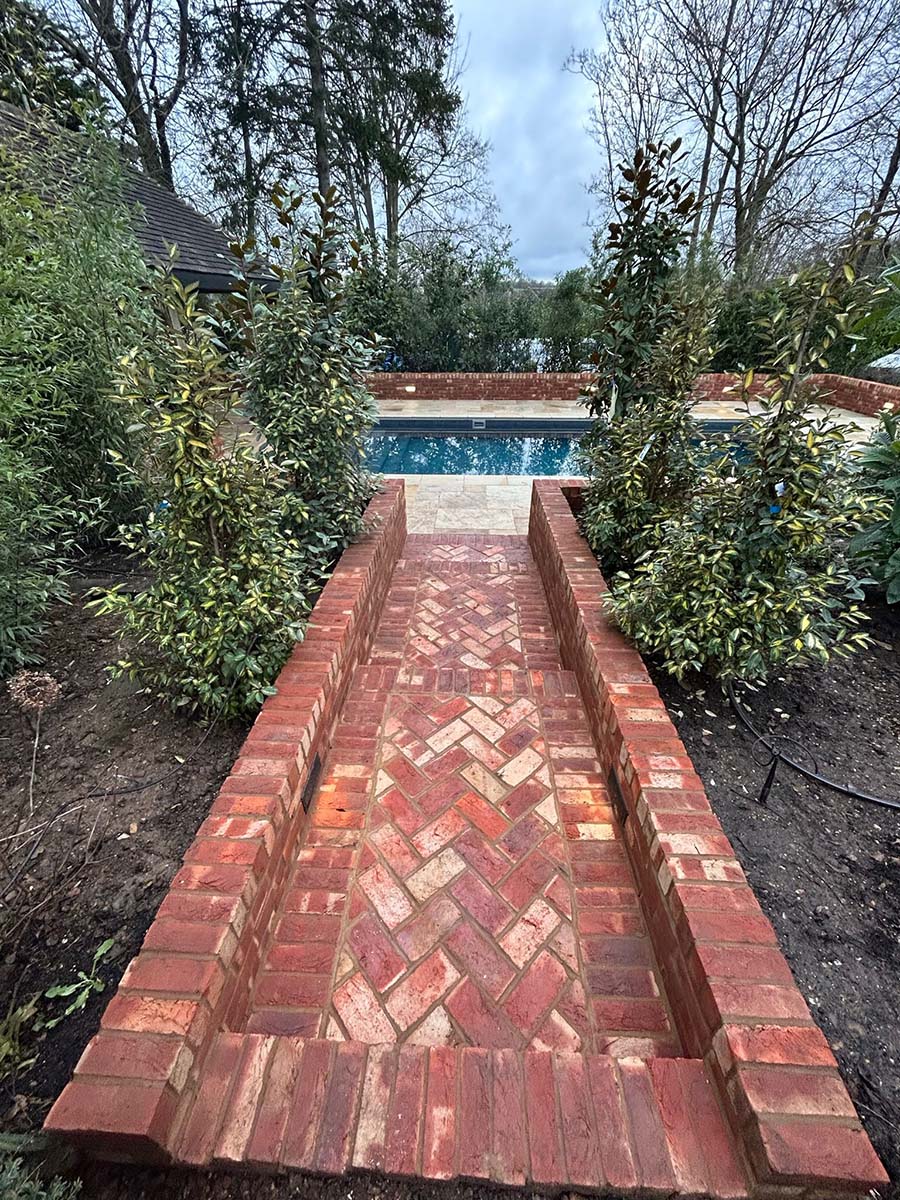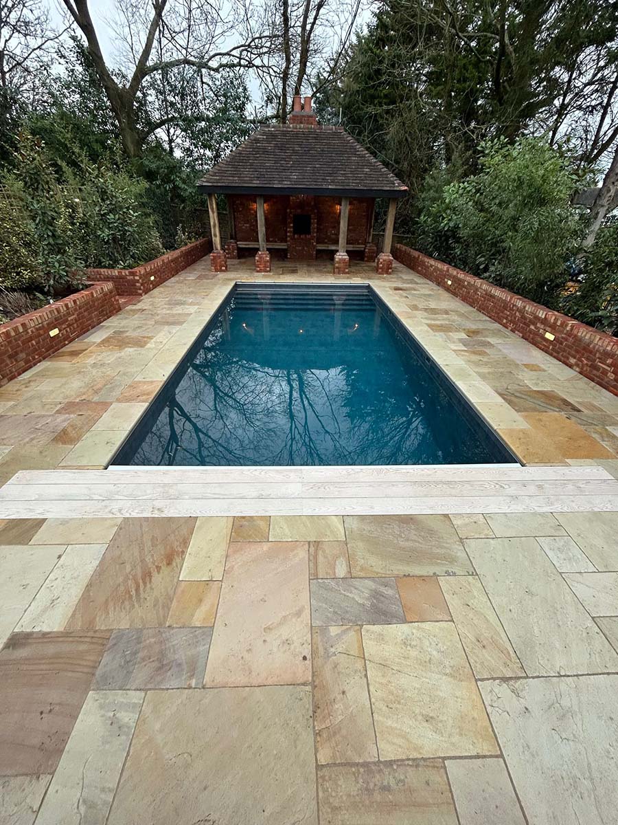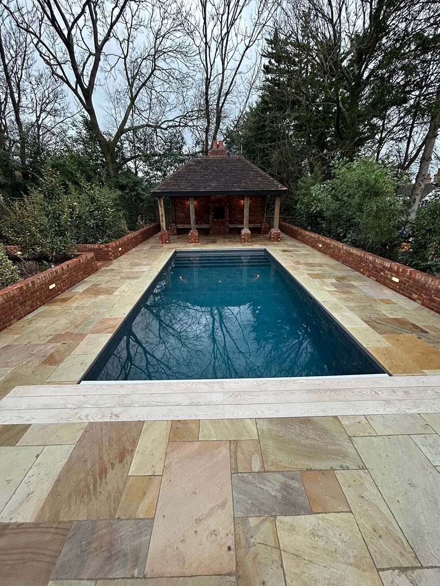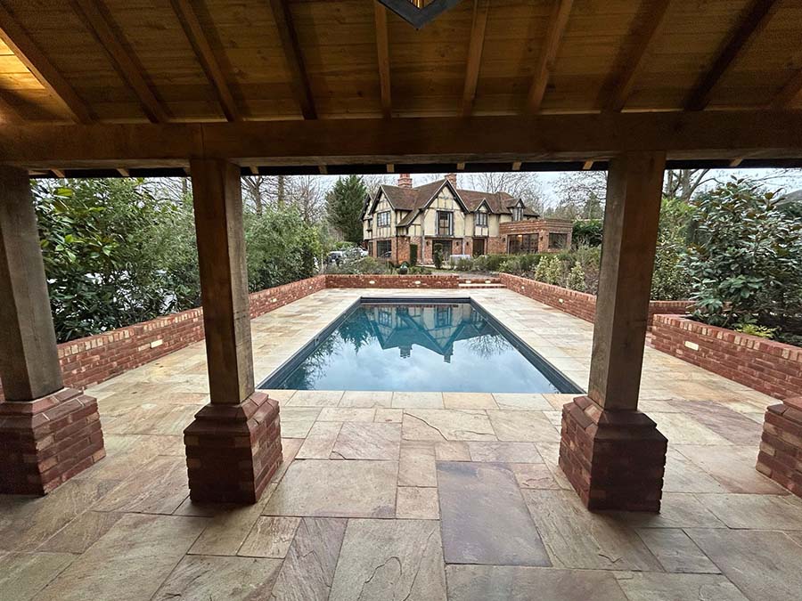 This project involved the careful installation of a new swimming pool and bespoke oak pergola within an established garden setting.